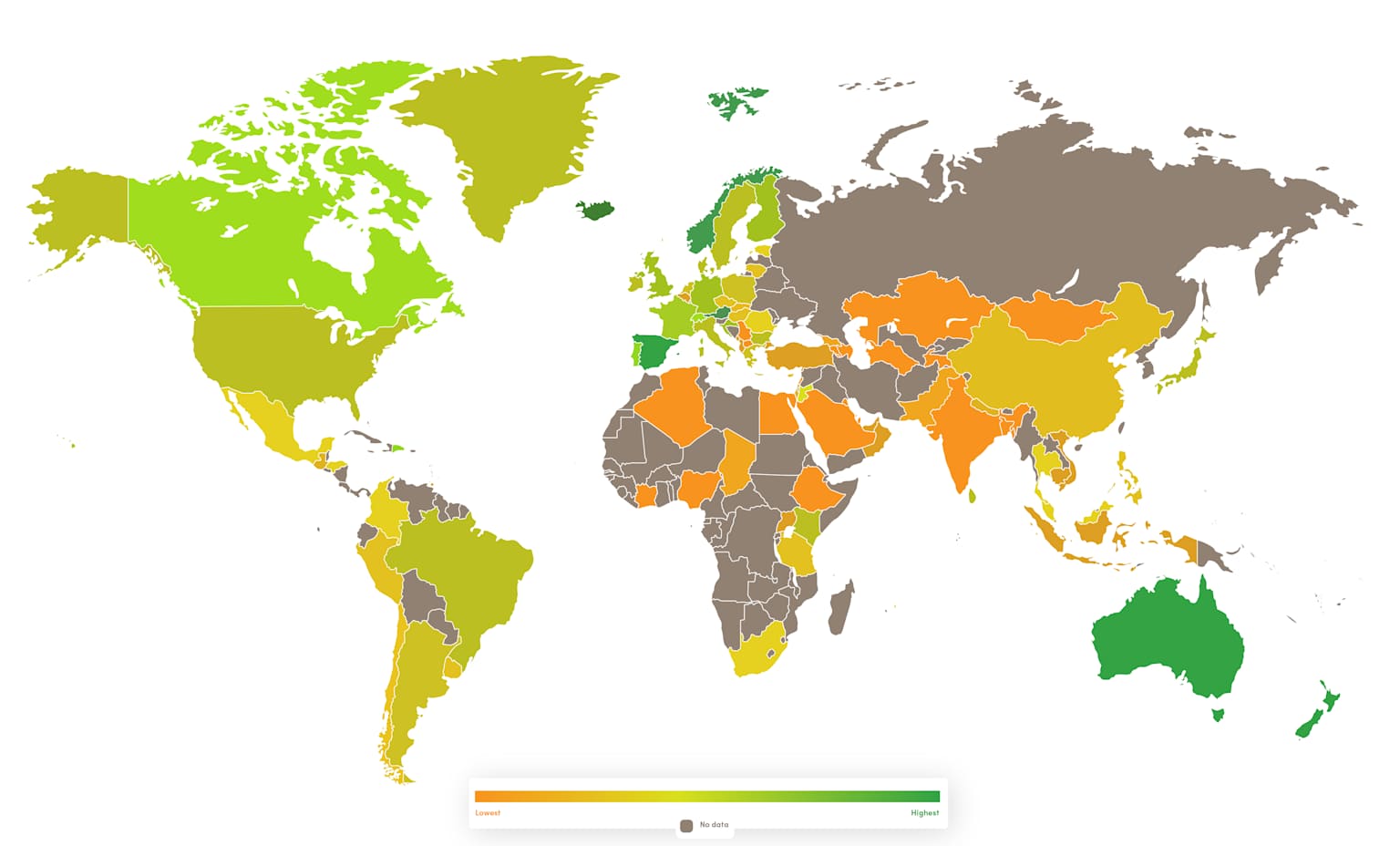 Hipcamp’s ‘Fresh Air Living Index’ analysed the factors that nature aficionados find most important. By compiling data from seven different categories, Hipcamp was able to assign scores to different nations based on their performance over key areas. The categories assessed include environmental sustainability, natural UNESCO sites, air pollution levels and the prevalence of green spaces. Countries were ranked from best to worst according to the data and were then assigned a score.